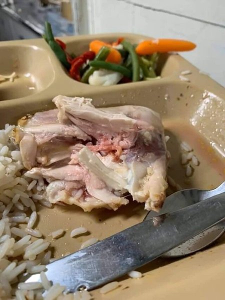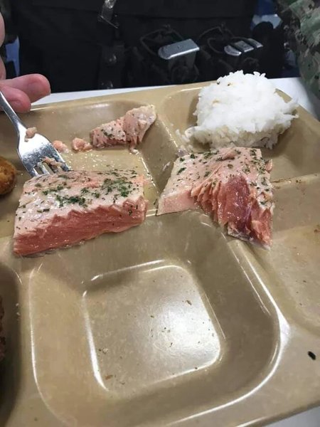 ВажноНа фотографиях, которые обнародовал экс-военный, изображены некоторые сомнительные блюда — сырая курица, сомнительное коричневое мясо, подозрительно розовый хот-дог, непрожаренные стейк и лосось и даже заплесневелый хлеб.