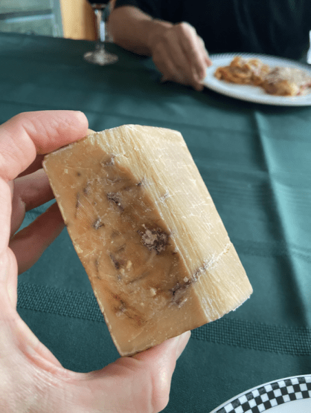 "Мой отчим хранит один и тот же кусок пармезана уже более 10 лет. Часто пьет чай и нарезает себе стружку деликатеса. Я так и не смогла набраться смелости, чтобы попробовать его самой", — написала женщина, добавив фото затвердевшего сыра со слоем плесени.