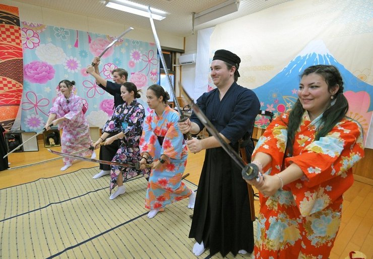 Во время уроков японского языка участники программы могут изучить каллиграфию. Во время обществоведения туристы имеют возможность надеть кимоно и попрактиковаться в боях с использованием имитационных мечей.