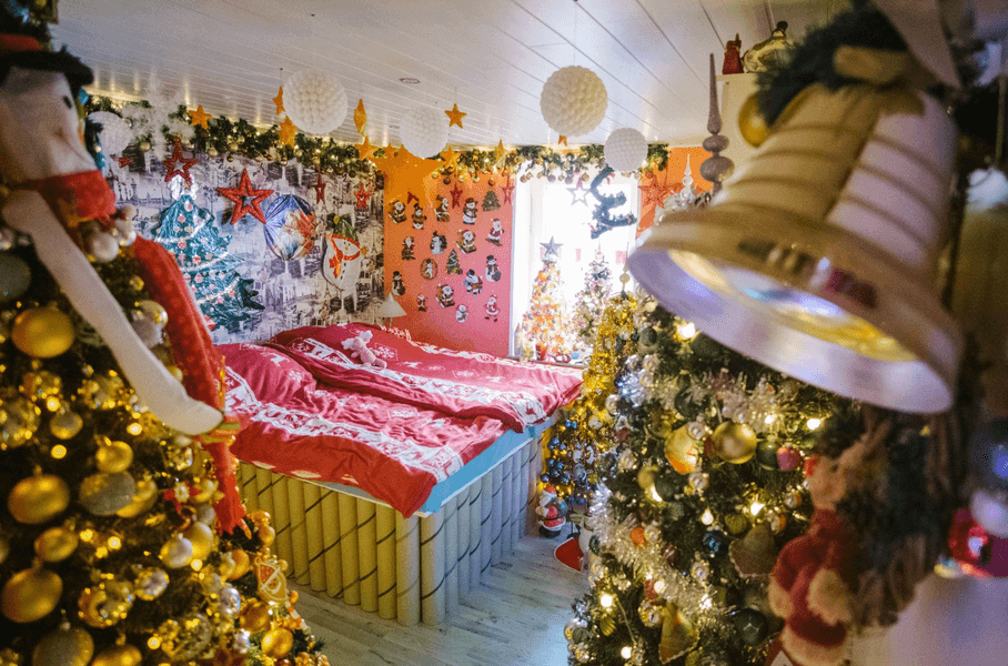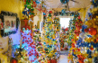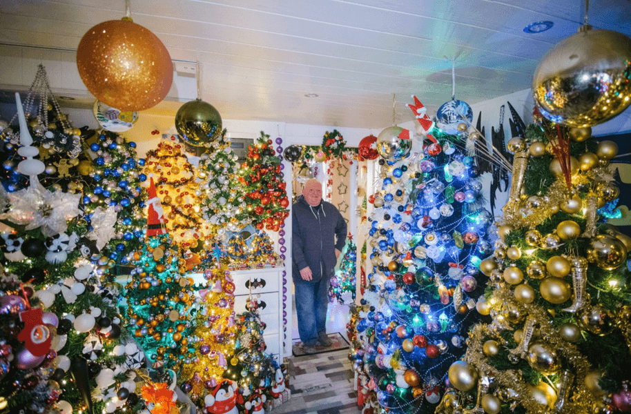 В их доме на 180 квадратных метрах жилой площади установлено 605 украшенных пластиковых елок, которые есть даже в ванной комнате. Они задекорированы 120 00 праздничных шаров, 50 000 огней и тысячами рождественских фигурок.