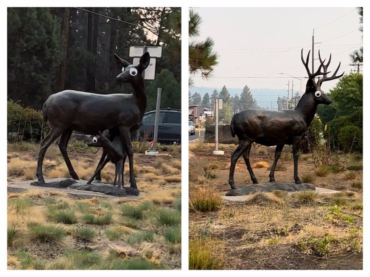 Скульптура оленей с выпученными глазами в Орегоне | Фото: соцсети