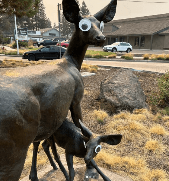 Жители города Бенд решили обклеить уличные скульптуры искусственными глазами. Власти, в свою очередь, потратили на их удаление 1,5 тысячи долларов.