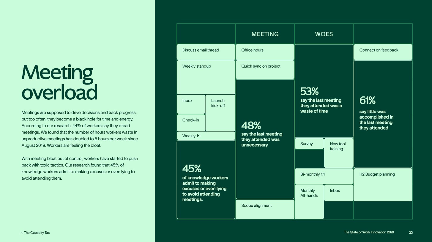 Как выяснилось, издание опубликовало 52-страничное исследование под названием The State of Work Innovation ("Состояние работы с инновациями"). Среди результатов — влияние длительных совещаний на работоспособность. Исследователи написали, что чрезмерное количество рабочих встреч влияет на людей и это влияние продолжается несколько часов после завершения события. Некоторые страдали до конца рабочего дня, указали они.