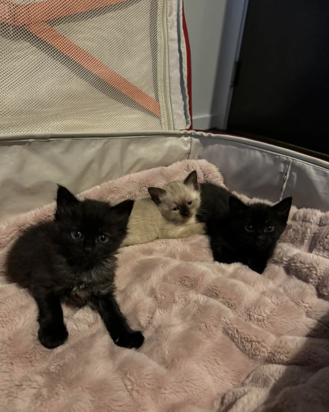 Супруги согласились забрать котят домой, по крайней мере до тех пор, пока они не выяснят, что делать дальше. Пушистиков отвезли к ветеринару, который подтвердил, что они здоровы, и призвал новых владельцев оставить животных по крайней мере на месяц, пока они не вырастут.
