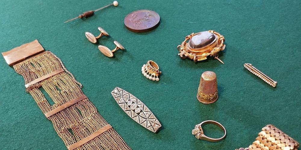 В тайнике также обнаружены золотые кольца, броши с жемчугом, браслеты, инкрустированные драгоценностями, а также заколки для волос. Драгоценности, видно, лежали под стеной длительное время и были запутаны среди корней старого дерева. До сих пор неизвестно, как, почему и когда они там оказались.