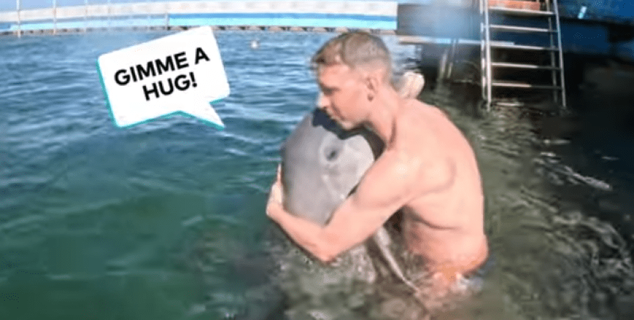 Один из обитателей дельфинария решил обнять посетителя, который спустился в бассейн для контакта с млекопитающим. Дружелюбного дельфина похвалили все комментаторы и тоже заявили, что были бы не против таких обнимашек.