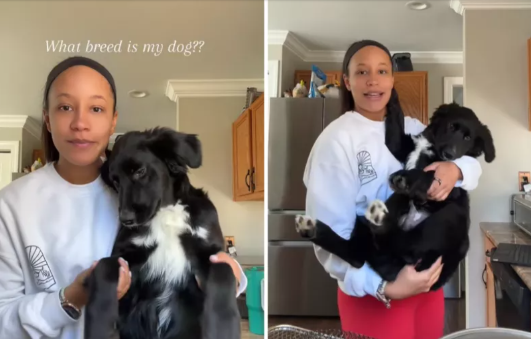 В ролике, опубликованном в марте, женщина показывает своего черного щенка среднего размера с характерными белыми отметинами на лапах и животе и предлагает зрителям определить его породу.