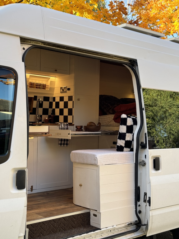 Работая почти каждый день с утра до вечера, они утеплили фургон, проложили проводку, установили солнечные панели, кровать, мини-кухню и системы хранения. В итоге получился комфортный, автономный и стильный ретро-дом, в котором есть все необходимое для жизни и путешествий.