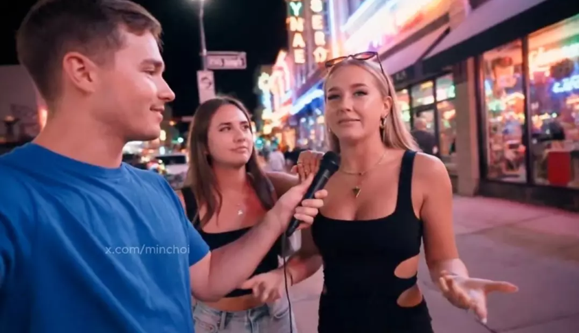 Короткий восьмисекундный ролик, на котором молодой человек берет интервью у двух девушек на улице, набрал более 14 миллионов просмотров на платформе X (ранее Twitter).