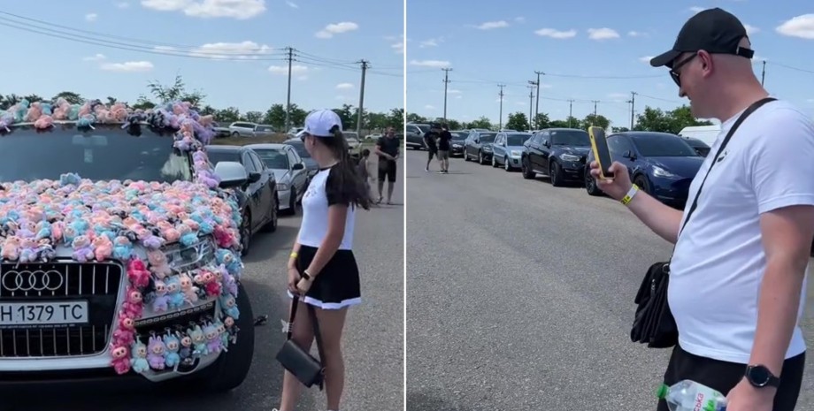 "Лабубу-Audi уже в Украине. Машина сегодня будет стоить 200 тысяч долларов", — заявил в кадре водитель чудо-машины, добавив, что игрушки можно приобрести отдельно.