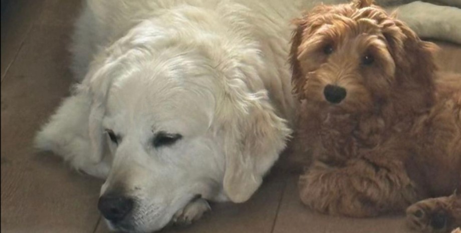 Женщина оставила щенка у родителей и тот подружился с ее старым псом детства