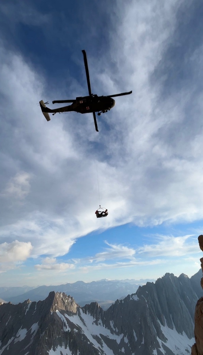 Потребовалось еще четыре часа, чтобы подготовить вертолет Национальной гвардии Калифорнии и вытащить ее из крутого узкого желоба, в котором она застряла.
