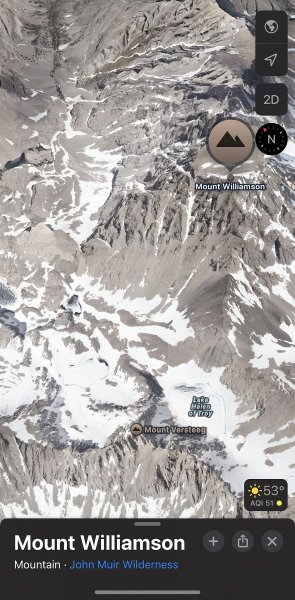 Гора Уильямсон находится в Восточной Сьерре, примерно в 240 милях к северо-востоку от Лос-Анджелеса.