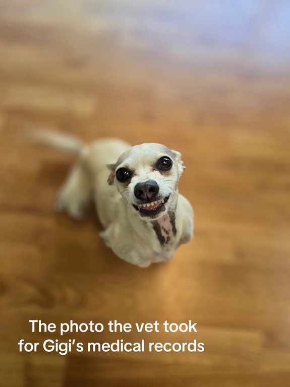27-летняя жительница Северной Каролины (США) Ариэль решила отвести свою собаку к ветеринару. Там должны были сделать фотографию четвероногого на паспорт, но увиденный кадр озадачил и рассмешил как владелицу чихуахуа Джиджи, так и пользователей соцсетей.