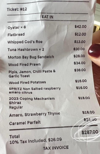 42-летняя женщина из Сиднея (Австралия) пожаловалась в соцсетях на счет в ресторане почти на 300 австралийских долларов (8 тысяч 200 гривен), несмотря на то, что она с подругой даже не заказывала основное блюдо.