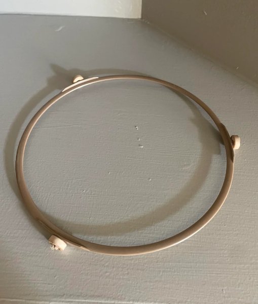 На фотографии показано странное пластиковое кольцо с тремя колесиками.