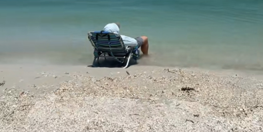 Мужчина уснул на пляже у самого берега и оказался по шею в воде (видео)