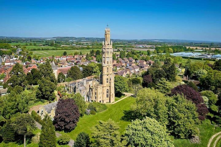 Башня расположена в деревне Гадлоу, а в ее комплекс также входит шесть соседних зданий, бывших частью бывшего замка и ныне превращенных в частные жилые дома с общим доступом к живописному озеру и ландшафтным садам.