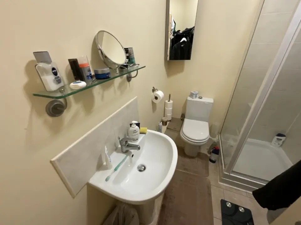 Есть также плита, духовка, холодильник, а также несколько шкафов для хранения. Ванная комната тоже довольно тесная: там есть небольшая душевая кабина, умывальник и туалет.