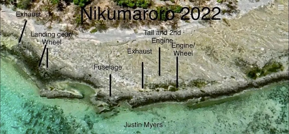 Используя увеличенные изображения с Google Earth, Майерс увидел группу объектов, которые, по его мнению, являются фрагментами разбитого самолета. Он убежден, что по размерам они точно соответствуют Lockheed Electra 10E, которым управляла Эрхарт.
