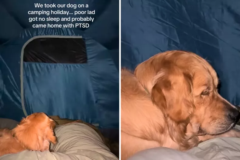Newsweek | золотистый ретривер не может заснуть в палатке