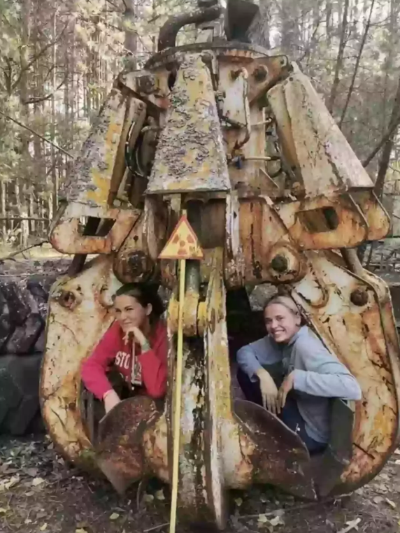Фото двух женщин, сидящих в гигантском ковше экскаватора в Чернобыльской зоне отчуждения, вновь стало активно распространяться в интернете.
