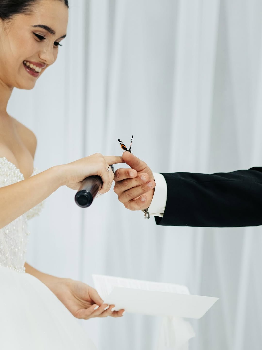 "Бабочка, которая облетела весь мир", — подписала в Instagram опубликованные фотографии с насекомым на ее свадьбе.