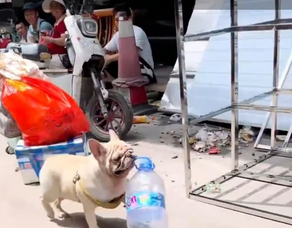 Французский бульдог из китайского города Гуанчжоу покорил соцсети оригинальным способом заработка и помощью хозяину. Пес усердно собирал пластиковые бутылки.