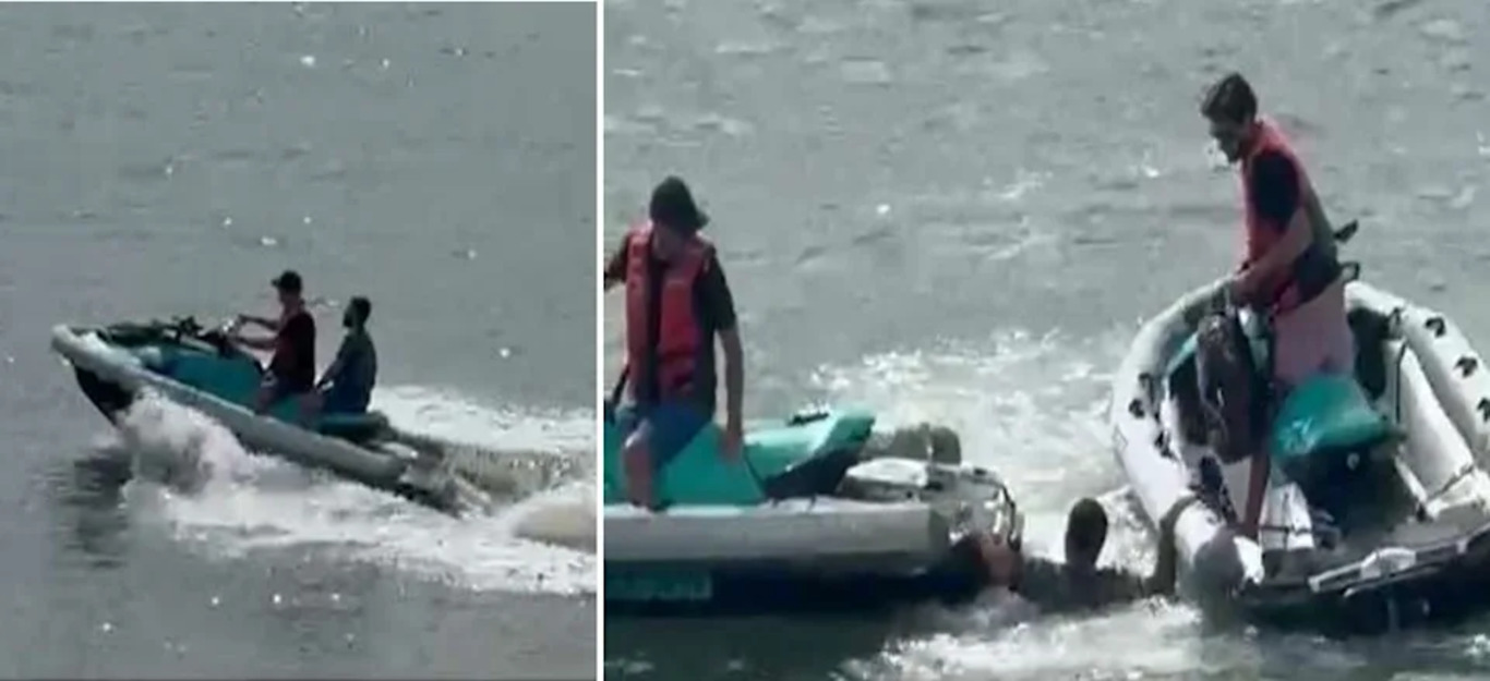 На помощь ему пришел случайный мужчина на гидроцикле, который подобрал беглеца и доставил его на берег