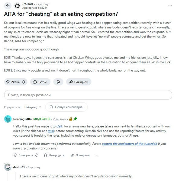 Публикация пользователя быстро приобрела популярность на Reddit — всего за два дня она собрала более 20 тысяч голосов и около 1200 комментариев. Большинство посетителей сообщества стали на сторону участника.