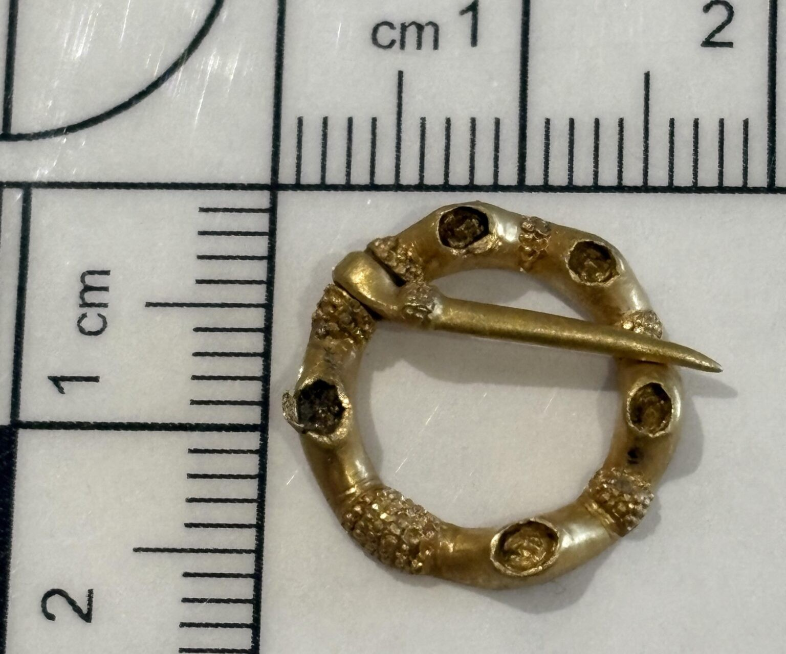 Дальнейшее исследование показало, что когда-то брошь имела пять драгоценных камней в гнездах, каждое из которых окружено крошечными шариковыми украшениями, похожими на желуди. Даже булавка украшена тонким орнаментом. Офицер по находкам подтвердил, что изделие, скорее всего, датируется XIII веком. Брошь официально признана сокровищем и теперь проходит процедуру оценки в коронерском суде.
