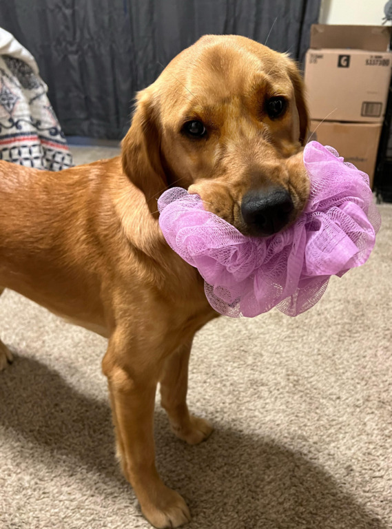 В стрессовых ситуациях (гости в доме, гроза, уход хозяина) питомец может брать предметы в зубы, чтобы снизить тревожность и обрести уверенность.