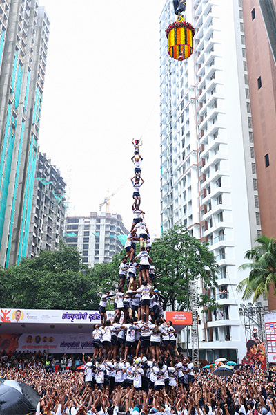 Пирамиду образовали в городе Тане штата Махараштра во время празднования индуистского фестиваля Дахи Ханди, когда отмечается рождение Кришны