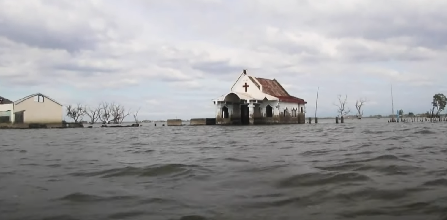 На острове, где проживает около 2500 человек, побережье приближается к воде со скоростью до 11 сантиметров в год. Этот процесс называют "проседанием земли" и он связан с чрезмерной откачкой грунтовых вод и ускоряющимся ростом уровня моря.
