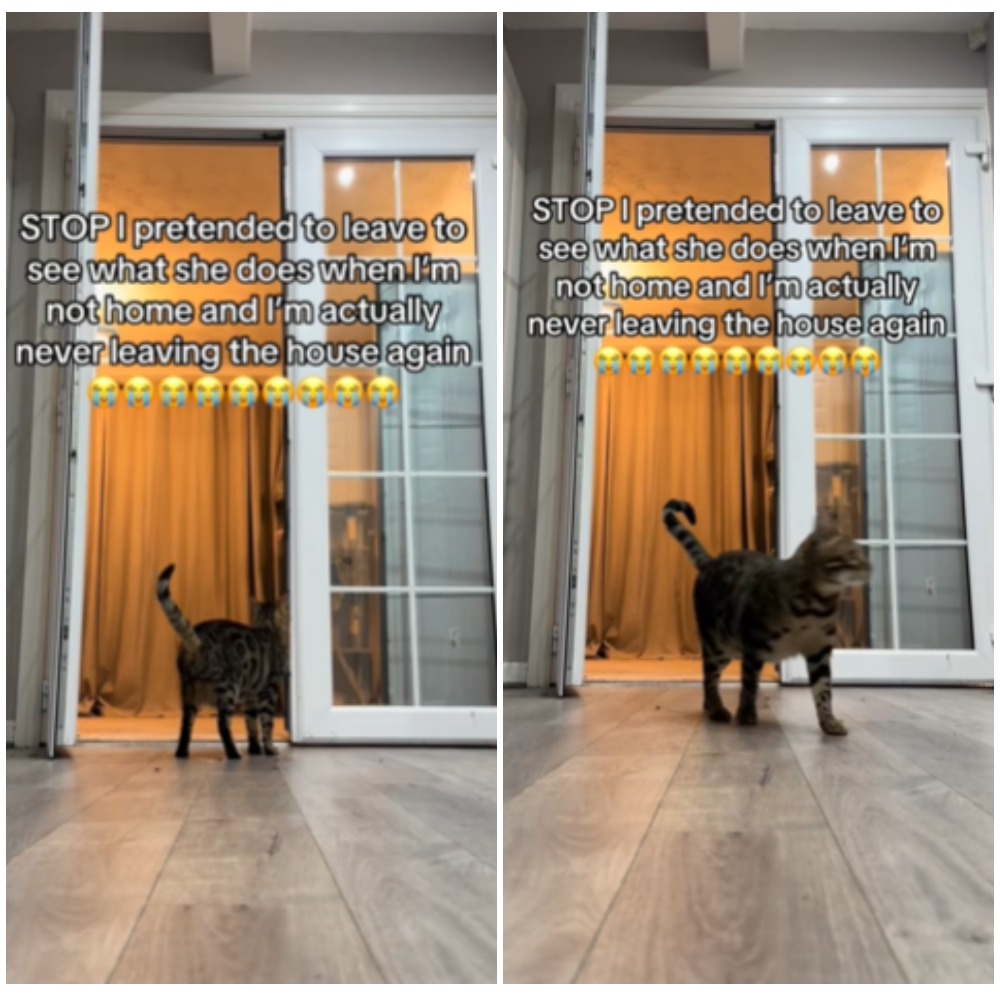 "Прекратите. Я притворилась, что иду, чтобы посмотреть, что она делает, когда меня нет дома, и на самом деле я больше никогда не буду выходить из дома. Простите, это разбило мне сердце", — подписала кадры женщина.