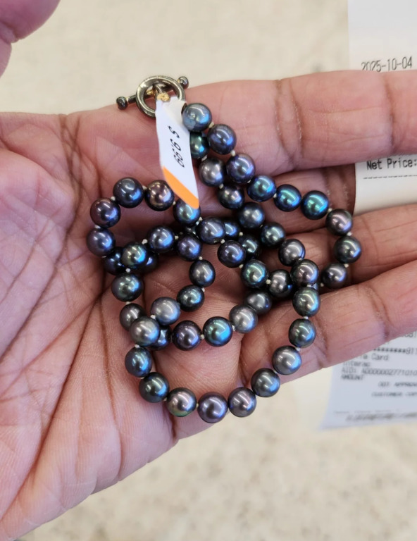 Женщина купила винтажное ожерелье всего за 10 долларов в секонд-хенде и неожиданно выяснила, что это настоящий пресноводный черный жемчуг.