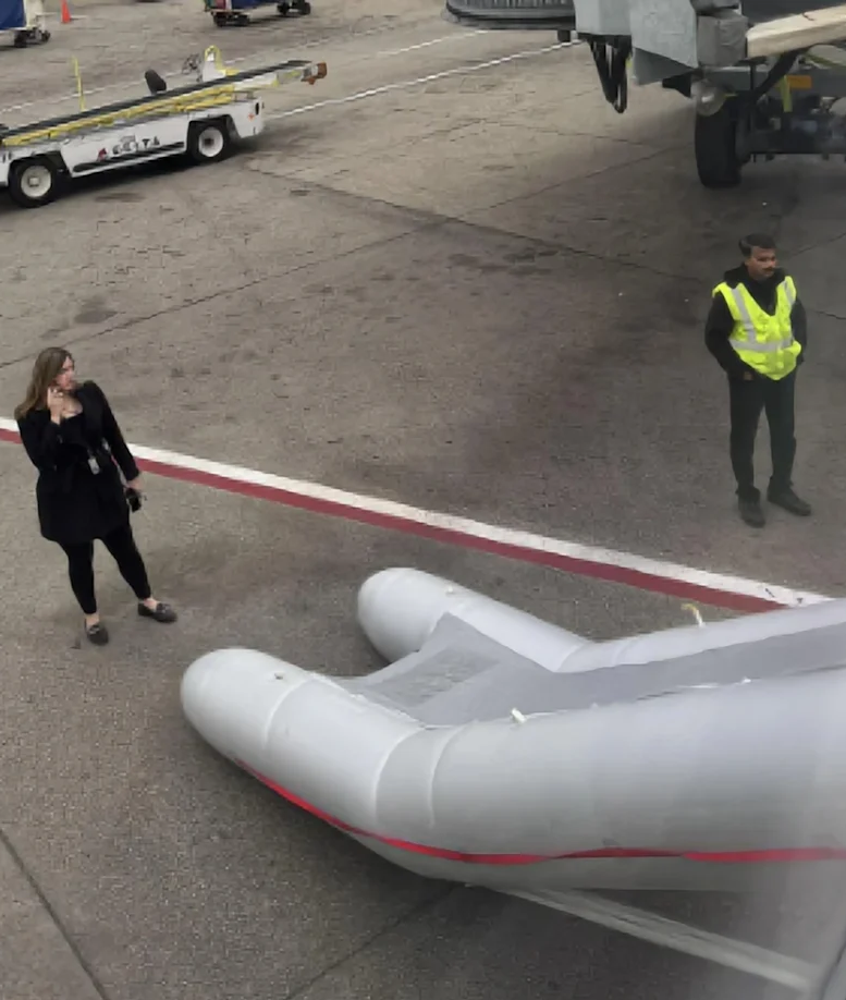 Пассажиры рейса Delta Air Lines столкнулись с многочасовой задержкой после необычного инцидента. Один из бортпроводников случайно активировал аварийный трап перед взлетом.