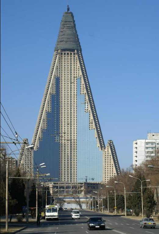 Пирамидальный отель "Рюген" в Пхеньяне — самое высокое здание Северной Кореи и один из самых загадочных проектов в мире. Несмотря на 105 этажей и более 3000 запланированных номеров, за 37 лет с начала строительства в нем так и не поселился ни один гость.