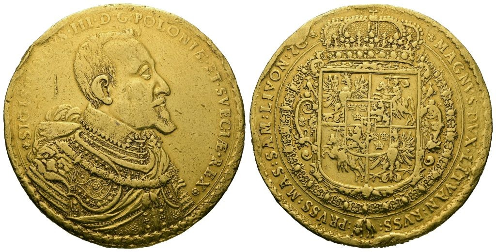 Главный лот — золотая монета номиналом 100 дукатов, отчеканенная в Праге в 1629 году. Монета весит 346 граммов чистого золота, имеет диаметр, похожий на пивную подставку и имеет изображение императора Священной Римской империи Фердинанда III, которую оценивают в минимум в £944 760 (51,8 млн грн).