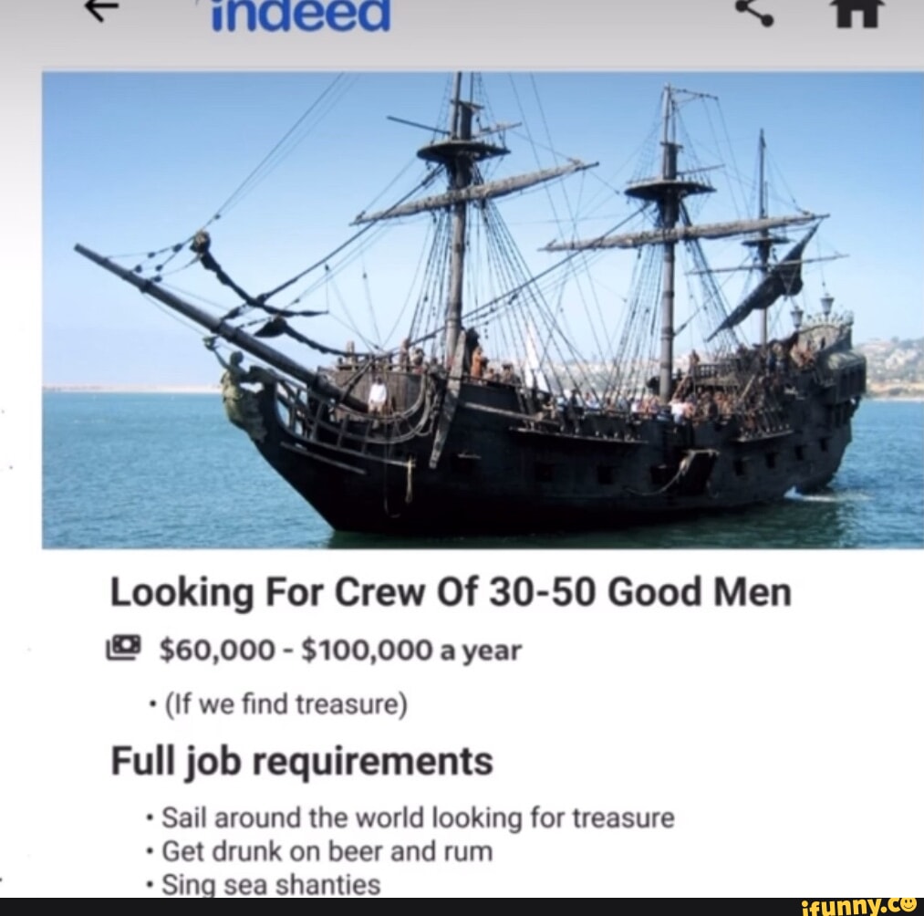 В обязанности входит "опьянение от рома", пение морских песен и веселье, однако есть один нюанс. Соответствующая вакансия появилась на платформе indeed несколько дней назад, сообщает ресурс iFunny.