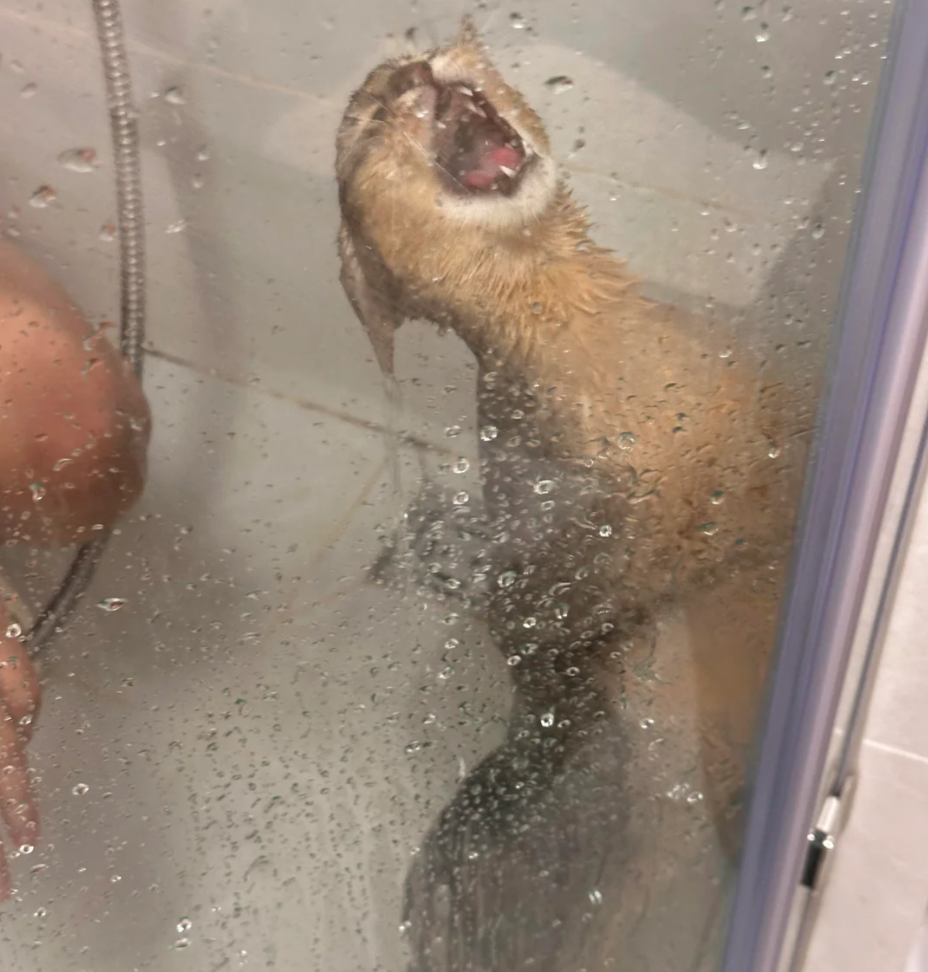 На популярном форуме Reddit появилось вирусное фото пушистого "смельчака", который в панике кричит в душе и отчаянно пытается выбраться.