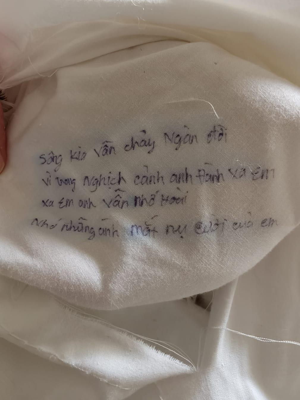 - "Это очень популярный тип вьетнамского стиха с четкими правилами и ритмом, которые трудно передать переводом. Шестое слово должно рифмоваться с шестым словом следующей строки, а восьмое слово — с шестым слогом последнего слова следующей строки. Поэтому тот, кто писал, старался сделать все аутентично и точно был носителем языка";