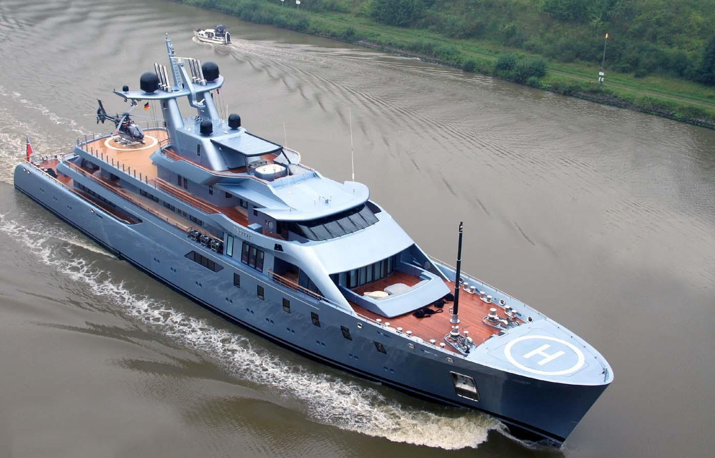 Pacific, построенная на немецкой верфи Lurssen и переданная владельцу в 2010 году, имеет внушительный набор "экстра" функций: две вертолетные площадки, лифт между палубами, бассейн, размещение для 12 гостей и 28 членов экипажа.