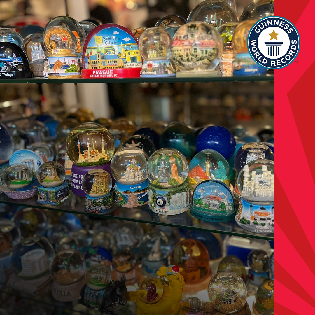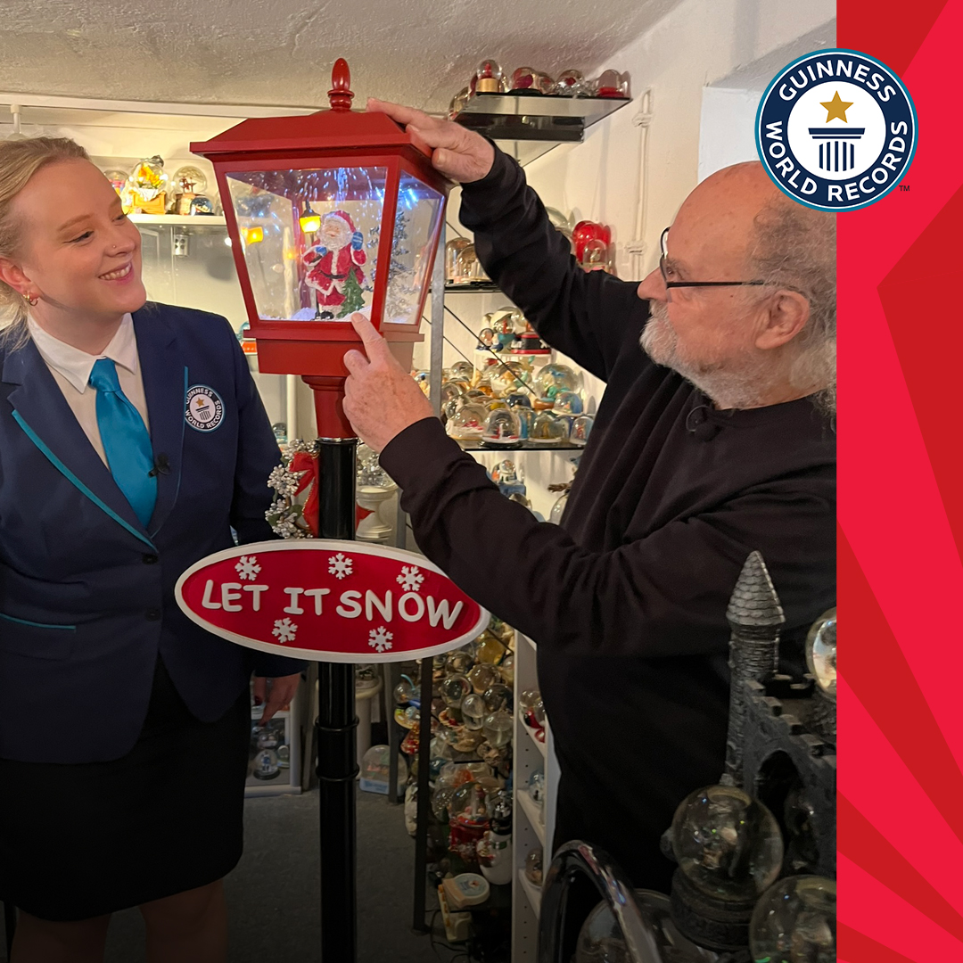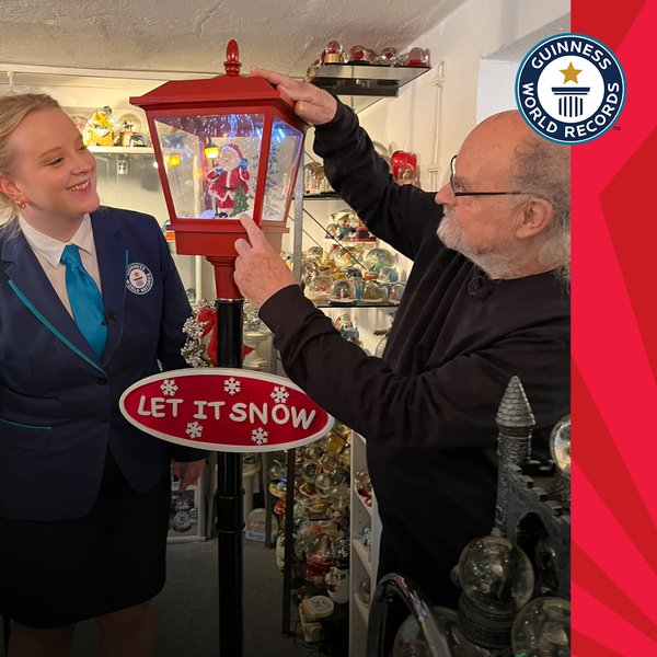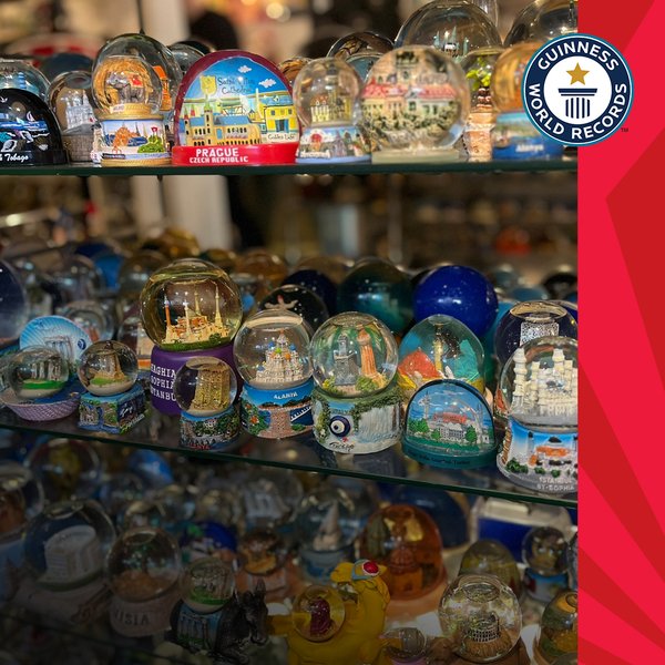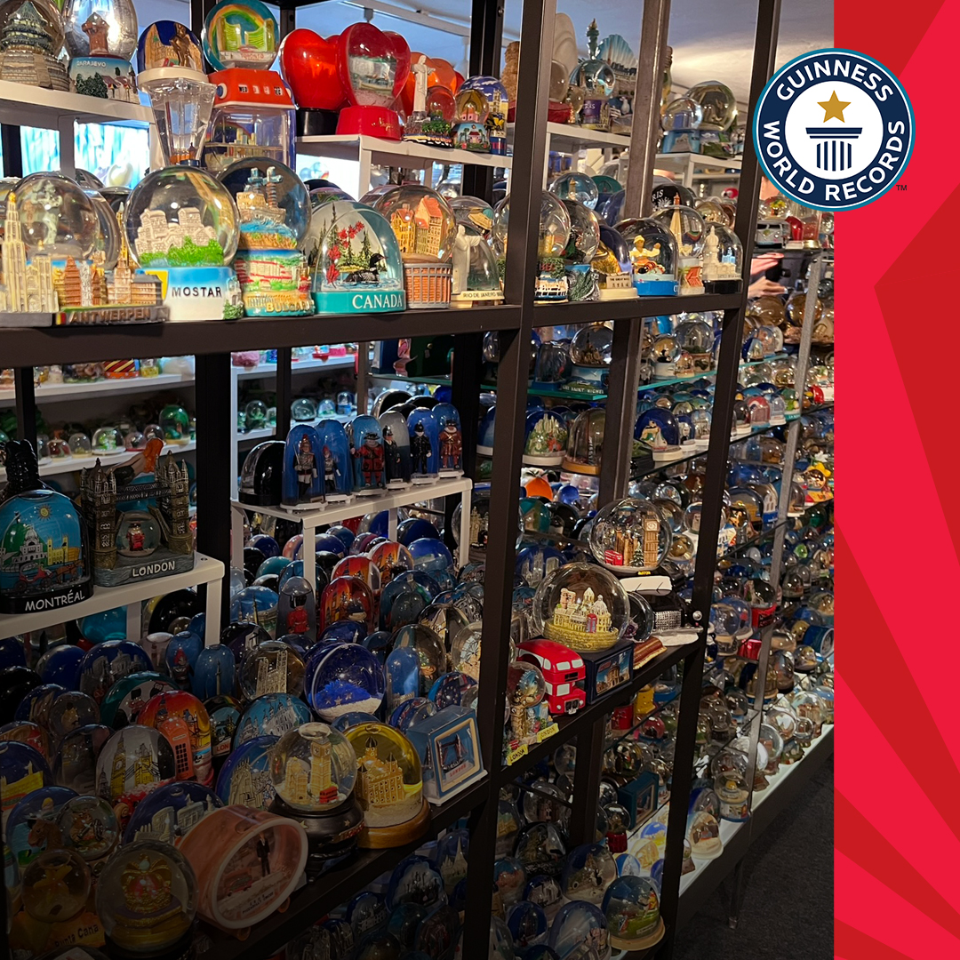 Коллекция дважды рекордсмена варьируется от крошечных снежных шаров, похожих на булавку, которую можно прикрепить к одежде, до гигантских, например, фонарного столба, который выше его самого. Среди наиболее уникальных экземпляров, которыми он владеет, есть шар в форме телефона Coca-Cola, шар в форме тонущего "Титаника" и шар в форме вертолета, которым управляет сам Санта-Клаус.