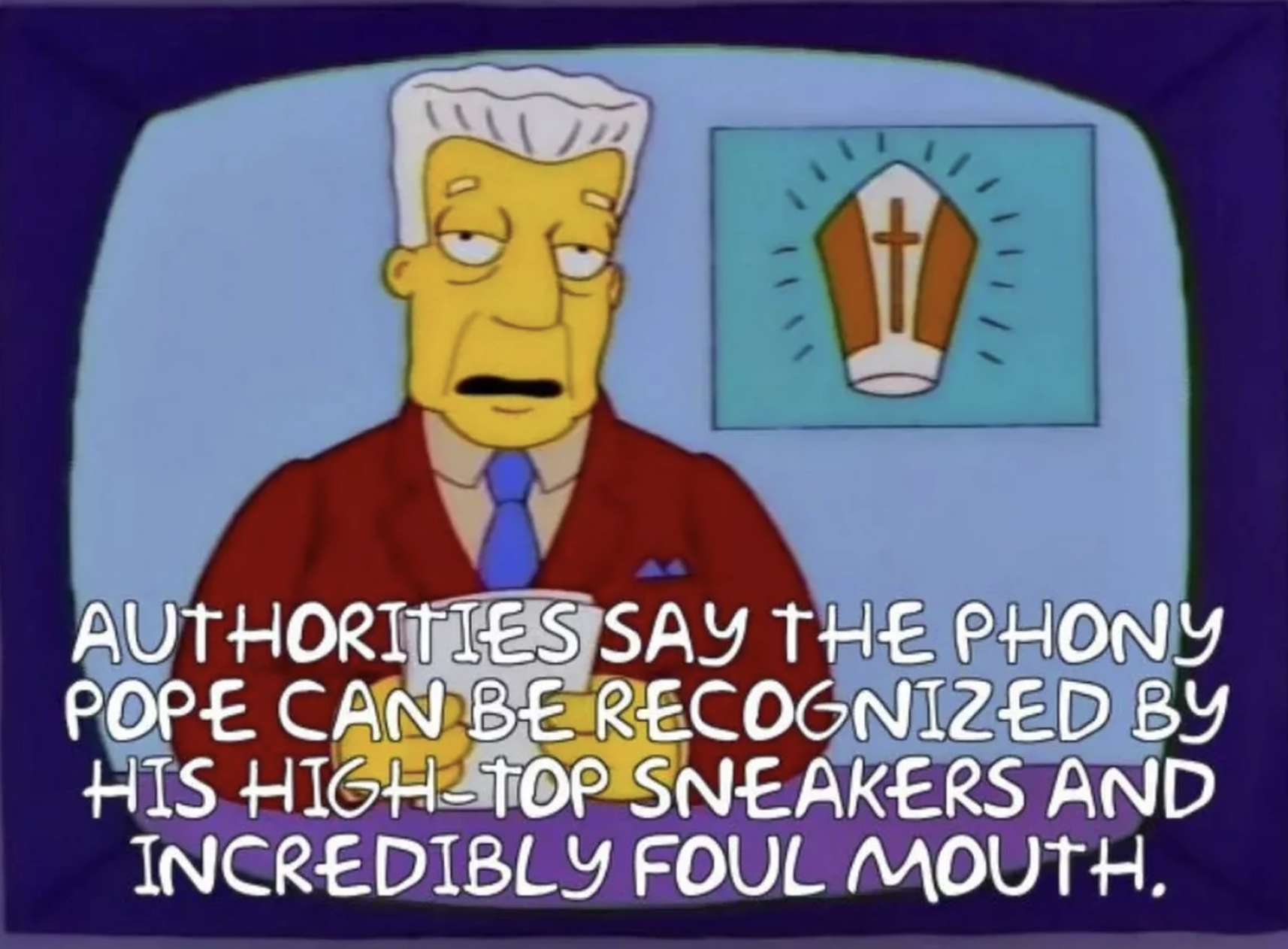 Поклонники вспомнили эпизод 1998 года, где в новостях Спрингфилда мелькает шутка о "фальшивом Папе" с американскими манерами. Тогда это выглядело как абсурд, но сегодня воспринимается почти как намек.