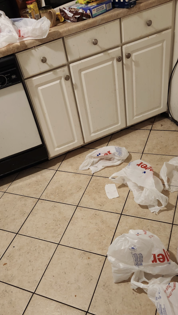 Своим опытом она поделилась на популярном форуме Reddit в разделе r/mildlyinfuriating. На опубликованных фото видно, что пластиковые пакеты с покупками просто разбросаны по полу и столешницам, а сухие продукты так и остались нетронутыми в пакетах. Кладовая же была пуста.