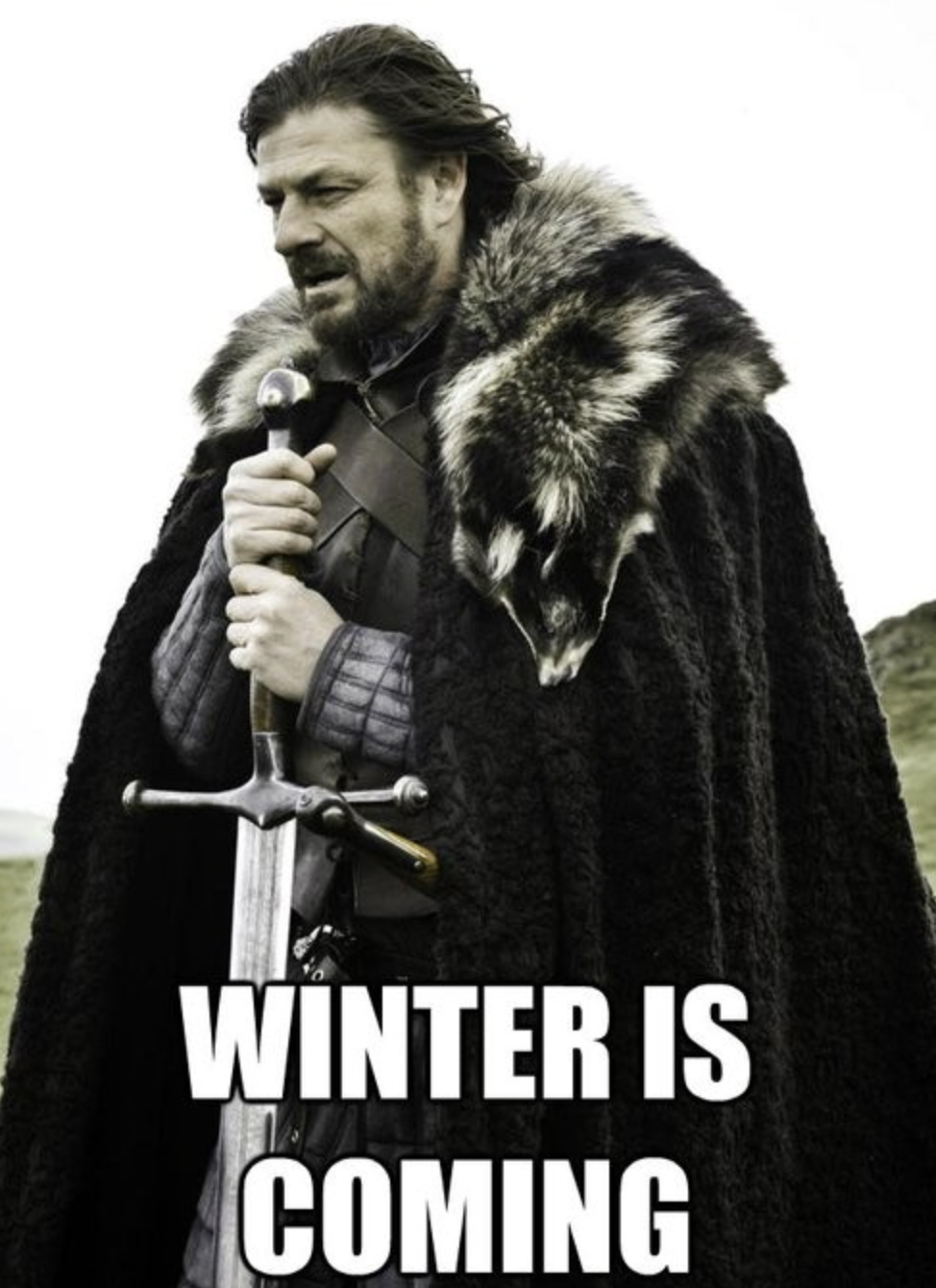 Нед Старк с мечом и подписью Winter Is Coming