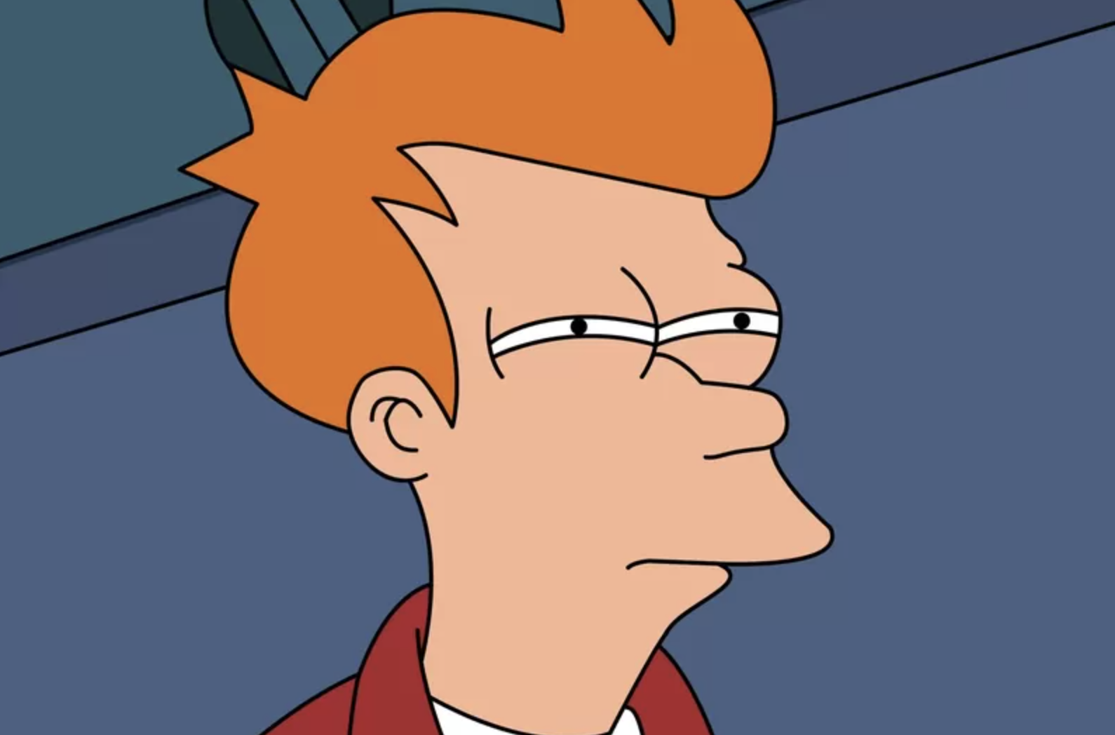 Персонаж мультсериала "Футурама" Фрай с прищуренными глазами