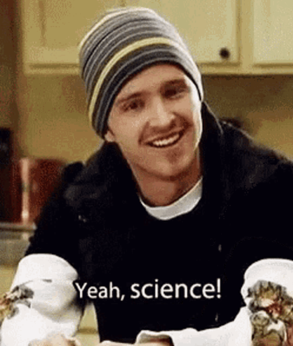 Джесси Пинкман улыбается и говорит Yeah, science!, кадр из сериала "Во все тяжкие"