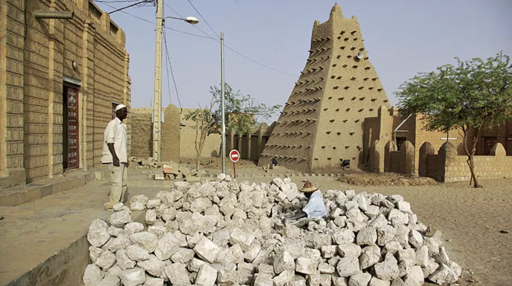 Жители Тимбукту на фоне одной из исторических мечетей, символа духовного и научного центра Африки